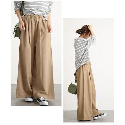 パンツ レディース 春 秋 夏 ワイドパンツ イージーパンツ ウエストゴム ロングパンツ ちょいゆる カジュアル 無地 ガウチョ バギーパンツ 着痩せ 美脚