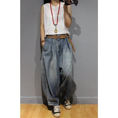 デニム バギーパンツ 体型カバー 楽ちん きれいめ ゆったり ハイウエスト 大きいサイズ レディース ロング丈 太め 大きいサイズ ファッション