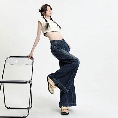 レディース ロングパンツ デニムパンツ ワイドパンツ ジーンズ 長め バギーパンツ フレアパンツ 大きいサイズ ブーツカットパンツ ワイドパ