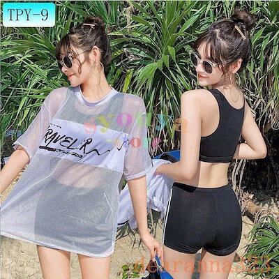 水着レディース体型カバー3点セット2wayオフショルダートップスぽっちゃりバックフリル20代30代40代可愛い水着