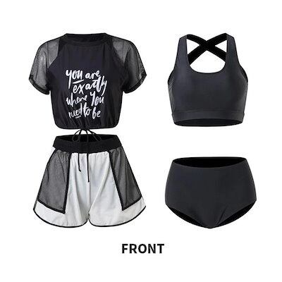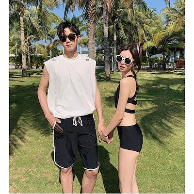 カップル ペアルック 水着 ラッシュガード セット セパレート 3点セット スポーツ水着 レディース メンズ ショートパンツ 2色 体型カバー 日よけ 露出控えめ メ