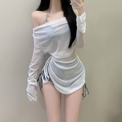 水着 2025新作 韓国ファッション水着 レディース 体型カバーラッシュガード3点セット 水着セット 日焼け対策 大きいサイズ セットアップ