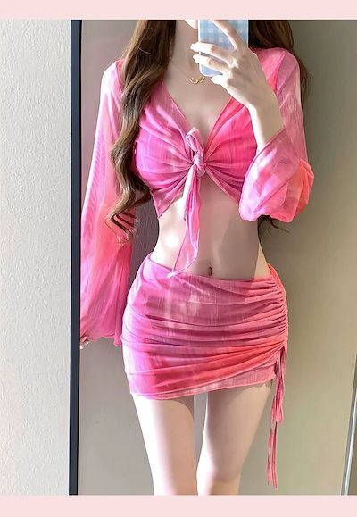 2025新入荷 韓国 水着 レディース 体型カバー 可愛い ワンピース 2/3点セット セクシー キレイ ラッシュガード ビキニ ワンピース水着 韓国 ファッション 03