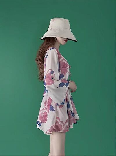 水着 レディース セパレート水着 3点セット 上着+ショートパンツ+パレオ 可愛い水着 みずぎ 大人 温泉 プール 体型カバー 可愛い 花柄 韓国 タンキニ 露出控えめ ママ水着 セクシー 夏 女性水 | koookooo