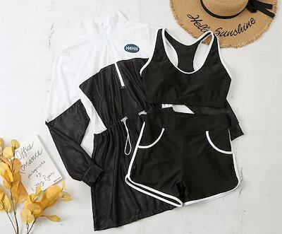 水着 タンキニ レディース 体型カバー 水着 ラッシュガード セパレート3点セット 短パン 長袖ロングシャツ 大きい目 露出控えめ ぽっちゃり 女子 ミセス ママ 盛れる 小胸 二の腕 お尻 お腹 太 | koookooo