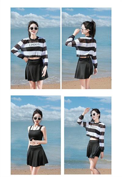 3点セット 水着 レディース セクシー トップス ビキニ 韓国風 セットアップ オトナ女子 ママ水着 女性向け 盛れる 海水浴 高校生 大学生 スクール 大きいサイズ ブラウン ブラック ブルー かわ | koookooo