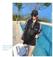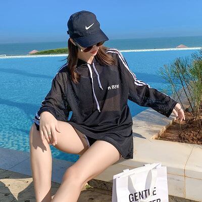 2色 水着 レディース 体型カバー ビキニ 3点セット かわいい ワンポイント カジュアル 長袖 メッシュ Tシャツ キャミソール ショートパンツ タンキニ スポーティー 韓国 水着 ハイウエスト ト | koookooo