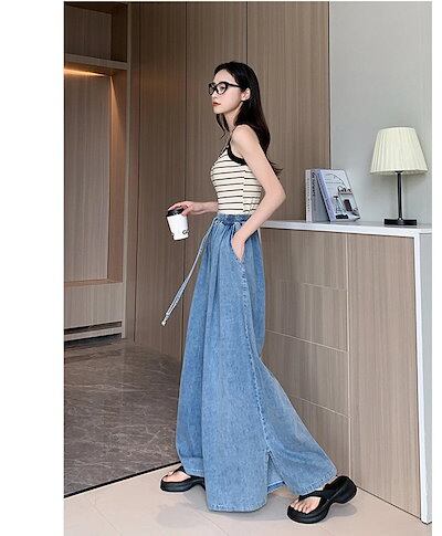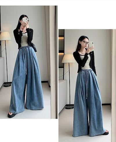 ワイドパンツ レディース 秋 冬 長め ロング丈 デニムパンツ パンツ デニム フレアパンツ ジーンズ ボトムス ゆったり 体型カバー ウエスト 大人 ウエストゴム 着?せ 美脚 おしゃれ きれいめ | koookooo