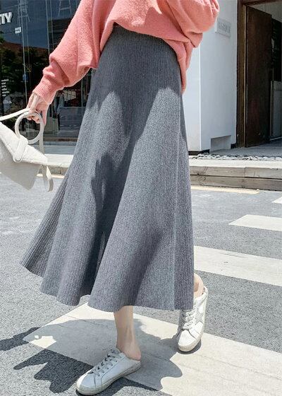 ニットスカート プリーツスカート レディース 秋 冬 厚手 ニットスカート フレアスカート プリーツスカート ロングスカート ボトムス ハイウエスト リブスカート ウエストゴム Aライン 無地 暖かい | koookooo