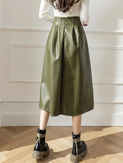 フェイクレザー フレアスカート レディース 冬 レザースカート フェイクレザー ロングスカート マキシ丈スカート フロントスリット スリット入り ハイウエストボトムス ロング Aライン 通勤 上品 お | koookooo