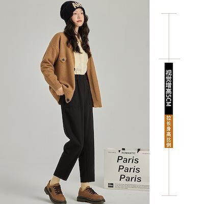 テーパードパンツ ツイードパンツ レディース 2025 秋冬新作 ハイウエストハーレムパンツ ゆったりウエスタンパンツ カジュアルハーレムパンツ