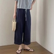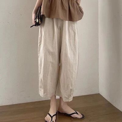 春 夏 ワイドパンツ カジュアル ゆったり パンツ 9分丈 綿麻パンツ レディースファッション
