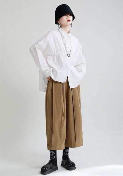 【J.Fashion】 ゆったり 九分丈 ワイドパンツ ゴム ハイウエスト スラックス 通勤 レディース 綿麻 パンツ メガ割