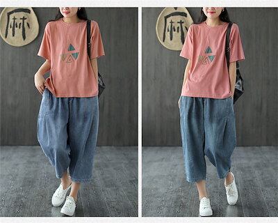 ワイド デニム パンツ ワイドパンツ ウエストゴム アンクル 7分丈 薄手 コットン100% レディース カジュアル デニムパンツ 春 夏 綿 デニムパンツ 7分丈 ブルー M/L | koookooo