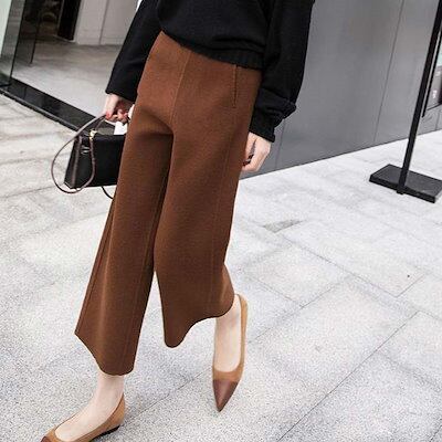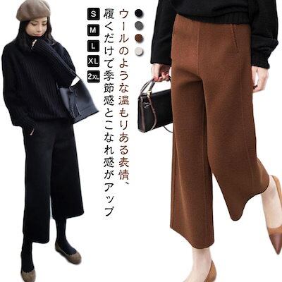 定番 秋冬 ウエストゴム パンツ ウールライク 厚手 ワイドパンツ 9分丈 体型カバー ギフト レディース 秋冬 仕事 OL 美脚 ハイウエスト アンクルパンツ クロップド丈 ガウチョ 暖かい オフィ | koookooo
