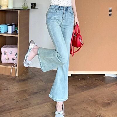 2024春夏パンツ デニム ジーンズ クロップド丈 アンクル丈 ワイドレッグ ハイウエスト 美脚効果 脚長効果 細見え 夏 黒 おしゃれ かわいい 韓国ファッション レディース お出かけ | koookooo
