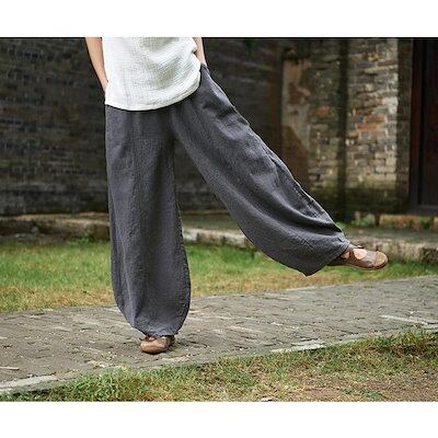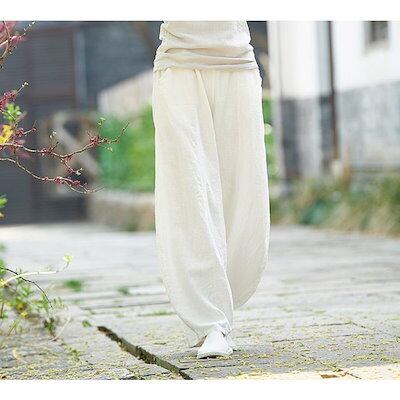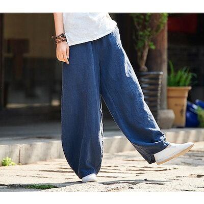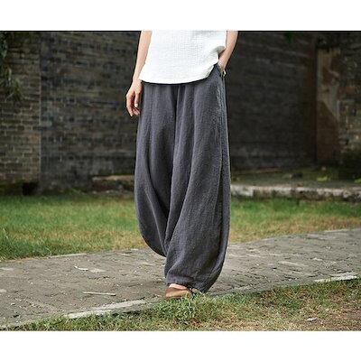リネン コットン 涼しい レディース ワイドパンツ パンツ 綿麻 アンクル バルーンパンツ リネン イージーパンツ サルエルパンツ