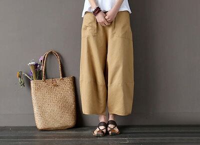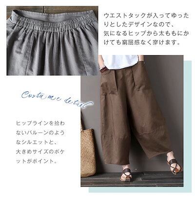リネン パンツ レディース 涼しい バルーンパンツ アンクル サルエルパンツ 綿麻 イージーパンツ リネン コットン ワイドパンツ 体型カバー ボトムス 森ガール ズボン ゆったり 薄手 リラックス | koookooo