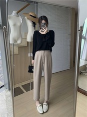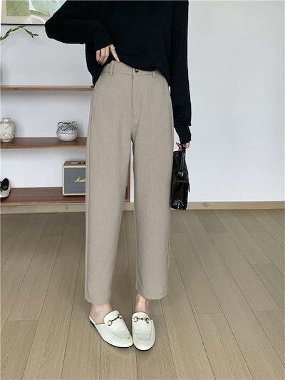 テーパードパンツ レディース ボトムス ボトム ズボン パンツ 秋 冬 春 お仕事パンツ ウエストゴム ハーフゴム ハイウェスト 無地 シンプル 大きいサイズ アンクル丈 ロングパンツ スーツパンツ | koookooo