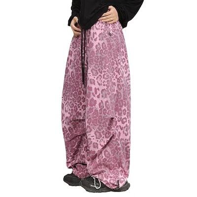 y 2 kレトロで個性的なストリートパンツピンクヒョウ柄パラシュートパンツゆったりカジュアルワイドパンツins