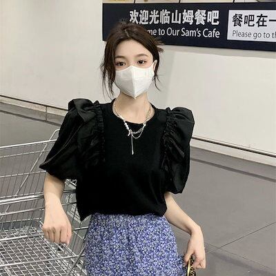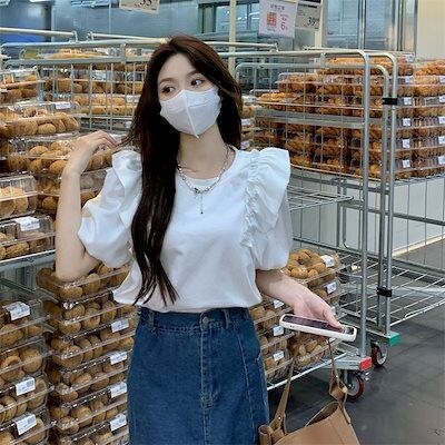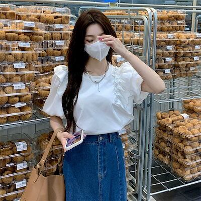 ブラウス レディース トップス カットソー 半袖 ゆったり パフスリーブ コットン 綿 ホワイト 白 無地 薄手 コットン 綿ブロード きれい目 爽やか 清楚 夏 tシャツ ブラウス 半袖 デザインブ | koookooo