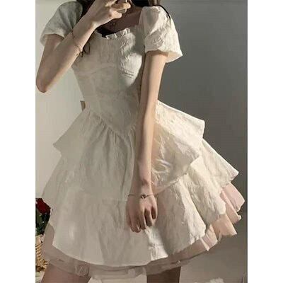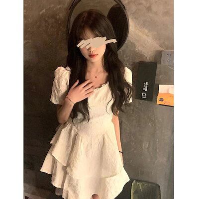 2025 春のワンピース ロリータドレス白い甘い妖精のドレス弓姫カワイイパーティースクエアカラー