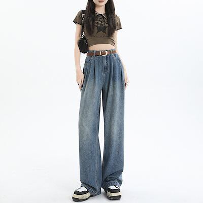 【3日以内出荷】脚長効果!デニムパンツ ワイドパンツ レディース ハイウエスト お腹 薄手 ドレープ ゆったり 多用途 韓国ファッション