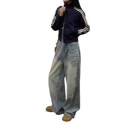 【3日以内出荷】脚長効果!デニムパンツ 2025 春秋 ストレート ルーズ ジーンズ レディース ハイウエスト スリム レトロ ワイドパンツ 韓国ファッション
