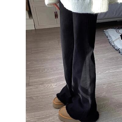 【3日以内出荷】脚長効果!デニムパンツ ブラック 洋ナシ体型 ローエッジ マイクロジーンズ レディース 大きいサイズ ハイウエスト ストレッチ 韓国ファッション