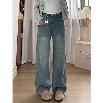 【3日以内出荷】脚長効果!デニムパンツ ヴィンテージブルー ワイドレッグジーンズ レディース 春秋新作 ハイウエスト ゆったり 大きいサイズ 薄手 洋ナシ体型 ストレートレッグ 韓国ファッション | koookooo