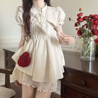 コスプレ ロリータ レディース 新しい中国スタイル セット レディース プレートバックル ジャカード ブラウス スカート ファッション 気質 レース 2点セット 韓国 花嫁 茶会 | koookooo