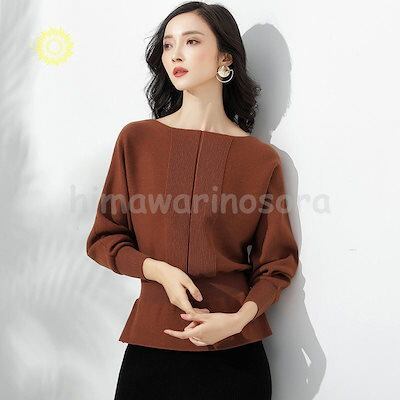 人気なリブニット ニットセーター レディース オフィス トップス ニット カットソー 長袖 ドルマンスリーブ ボートネック 大きいサイズ 通勤 秋 秋冬 30代 40代 コーデ