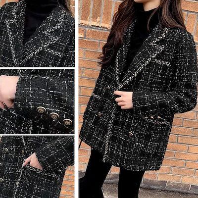 冬アウター ツイード風ジャケット レディース 秋冬