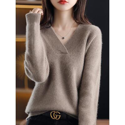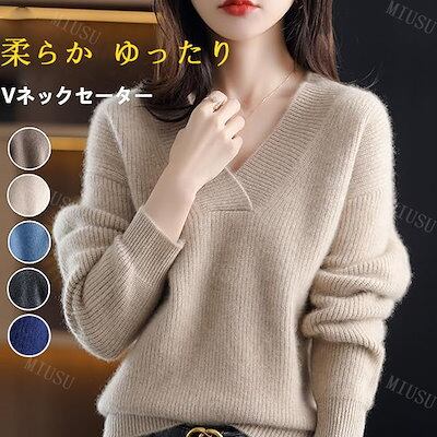 【早割限定】セーター レディース ニット トップス Vネック カットソー 長袖 無地 柔らか ゆったり 体型カバー 上品 おしゃれ 可愛い カジュアル オフィス 普段着 通勤 春 秋 冬 | koookooo
