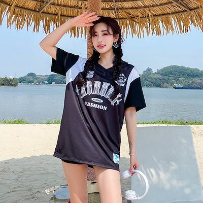 水着 レディース 3点セット ビキニ UVカット体型カバー着痩せ 韓国ファッション可愛い ゆったり Tシャツ中学生 高校生スポーツ スポーティー タンキニ ラッシュガード