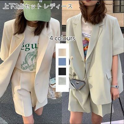涼しく楽ちんセットアップ 上下2点セット レディース韓国ファッション夏新作スーツジャケット レディース フォーマルコート 通勤OL ゆったり