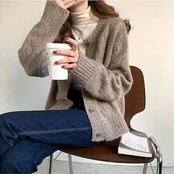 ニットトップス ファッション カジュアル セーター コート 女性 ゆったりする ニットカーディガン