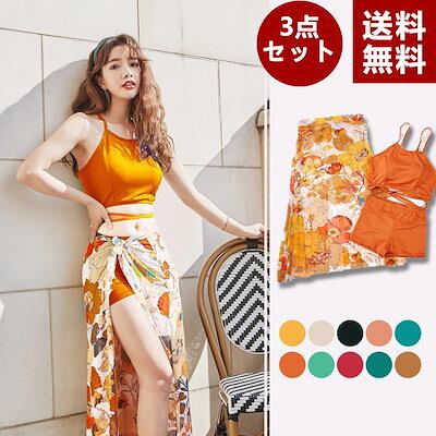 水着 レディース 3点セット ビキニ UVカット体型カバー着痩せ 韓国ファッション可愛い タンキニ ラッシュガード キャミ大きいサイズ