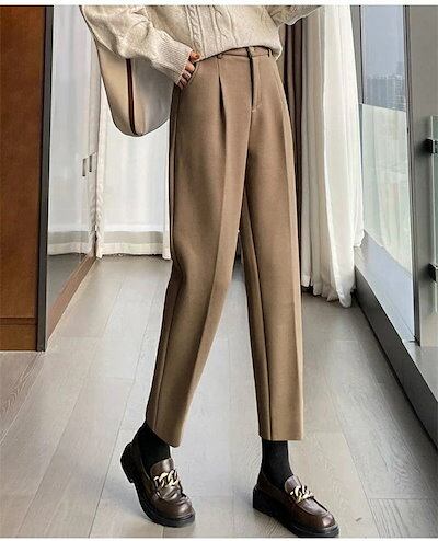 テーパードパンツ レディース パンツ 秋冬 ロングパンツ 裏起毛 長ズボン ボトムス スラックス 無地 ポケット付き ズボン 体型カバー ロング丈 ハロンパンツ ハイウエスト 暖かい カジュアルパンツ | koookooo
