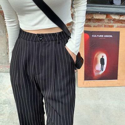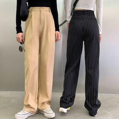 ストライプカジュアル スラックス タックパンツ レディース きれい目 韓国ファッション ピンストライプ
