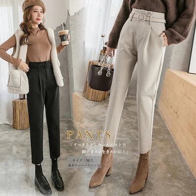 メガ割 テーパードパンツ レディース スーツパンツ ハイウエスト ベルト付き ストレートレッグパンツ