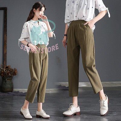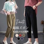 新品(タイムセール)ガウチョパンツ リネンパンツ 九分丈 レディース テーパードパンツ ボ 涼しい 通気 綿麻ズボン 太め ゆったり 体型カバー 薄手 春夏