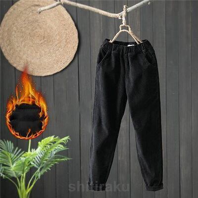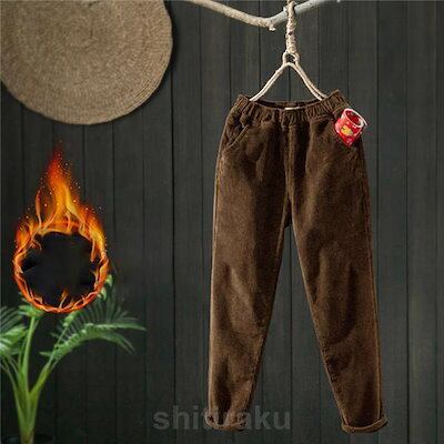 レディース テーパードパンツ 裏起毛 極暖 あったかい 防寒 美脚 ゴムウエスト フリース 暖パン コーデュロイ 着やせ 細身 ハールーン風 保温