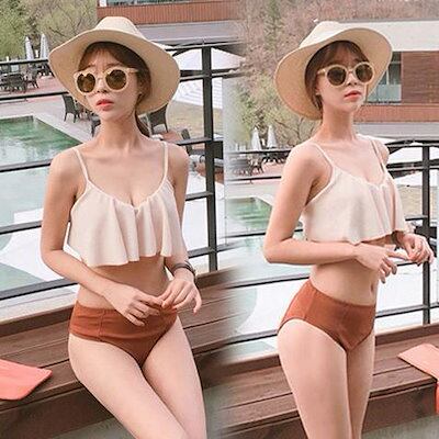 ビキニ水着レディース 夏 ビキニ2点セット 韓国風 フレア ボリューム 小胸バンドゥビキニ 水着 セパレート 40代 セクシー スイムウェア 温泉 ママ水着