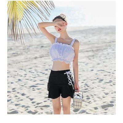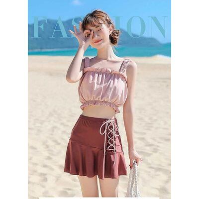 水着2点セット レディース 体型カバー水着 セパレート リボン スカート ビキニ 小胸バンドゥ 40代 オシャレ韓国風 可愛いスポーツ スイムウェア ママ水着 学生