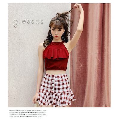 水着 レディース 体型カバー 水着2点セット ビキニ セパレート水着 チェック柄スカート 小胸バンドゥ 40代 オシャレ韓国風 スポーツ スイムウェア ママ水着
