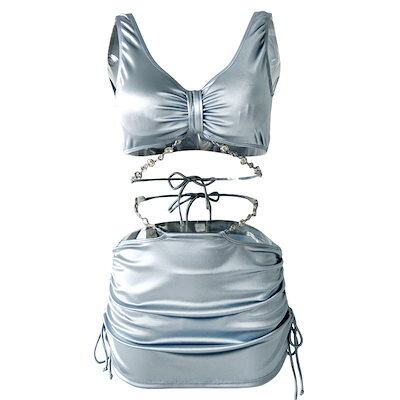 シルバーのセクシー水着 2点セット3点セット水着ビキニ水着韓国おしゃれ水着レディースワンピースセット温泉リゾートビキニ水着仙女必携