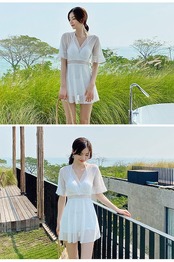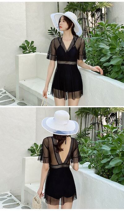 送料無料 2点セット 半袖 レディース 体型カバー水着 ミセス ママ水着 30代 20代 40代 オールインワン 無地 セクシー バックシャン おしゃれ ぽっちゃり カバーアップ 小胸 バスト 盛れ | koookooo