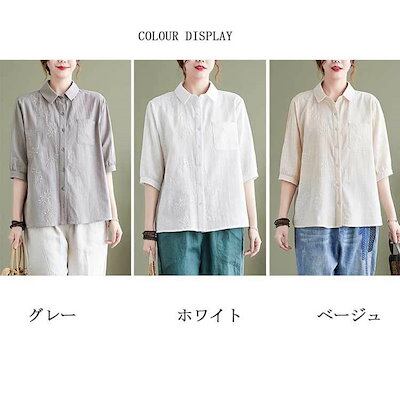 【大好評】チュニック 半袖 春 半袖シャツ 7分袖 シャツ 刺繍 白シャツ リネンシャツ シャツ レディース トップス 七分袖 襟付き シャツブラウス 春夏 無地 ゆったり 40代 綿麻風 前開き ア | koookooo