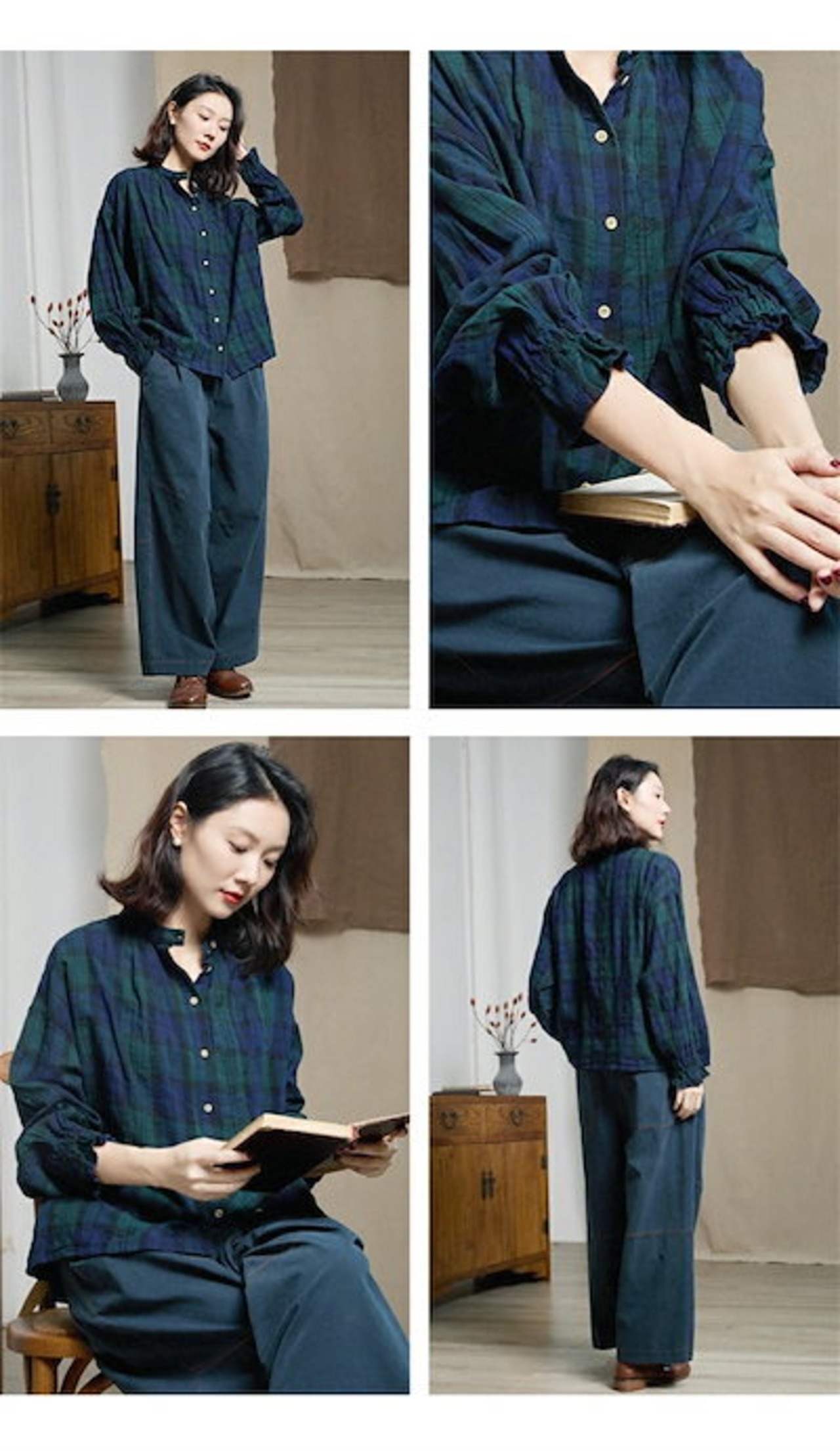シャツ ブラウス レディース チェック柄 長袖 シャツブラウス 春 ゆったり 綿シャツ コットンシャツ チェック柄シャツ トップス ラウンドネック 長袖シャツ 体型カバー チュニック チュニックシャツ | koookooo